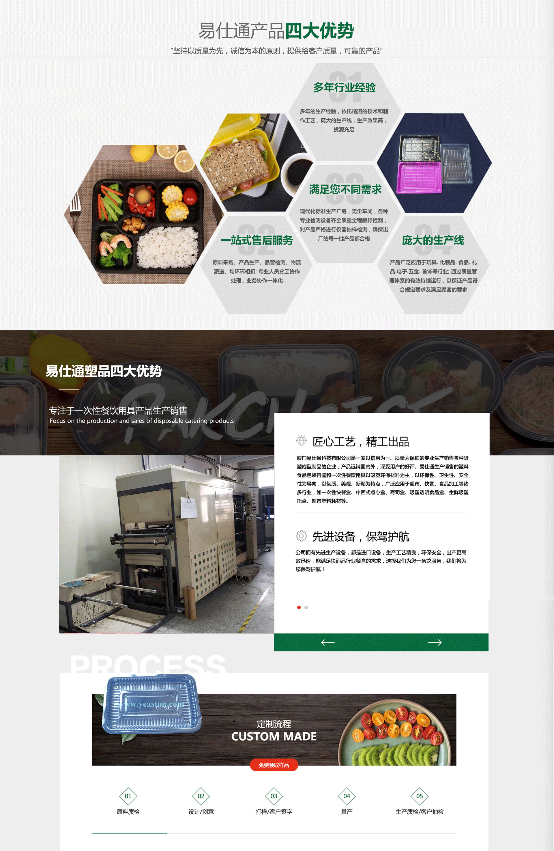 廈門易仕通科技有限公司是一家以信用為基礎(chǔ),生產(chǎn)銷售各種吸塑包裝制品的吸塑廠,產(chǎn)品遠(yuǎn)銷國(guó)內(nèi)外,深受用戶的好評(píng)。公司成立于2007年,擁有先進(jìn)的現(xiàn)代化成套吸塑生產(chǎn)設(shè)備和檢測(cè)儀器、擁有不斷創(chuàng)新的吸塑技術(shù)隊(duì)伍和誠(chéng)信為本的經(jīng)營(yíng)理念,為廣大客戶提供吸塑制品和熱情周到的服務(wù)。